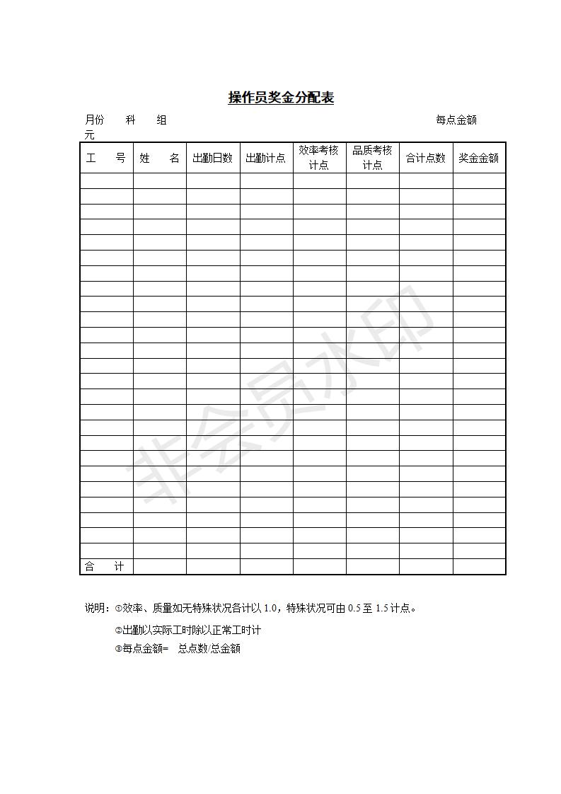 操作员奖金分配表